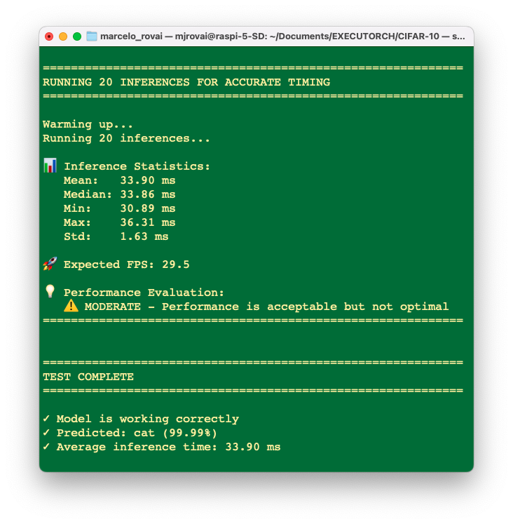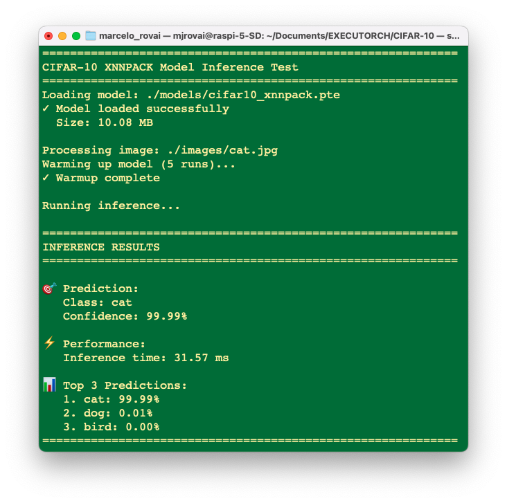 This chapter adapted our image classification workflow from TensorFlow Lite to PyTorch EXECUTORCH, demonstrating that the PyTorch ecosystem provides a powerful and modern alternative for edge AI deployment on Raspberry Pi devices.