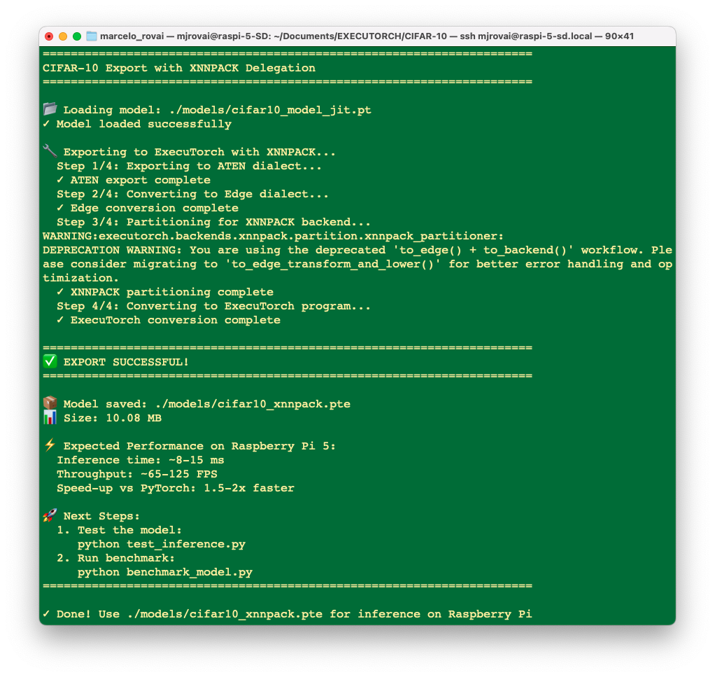 - Successfully set up PyTorch and EXECUTORCH on Raspberry Pi (4/5)