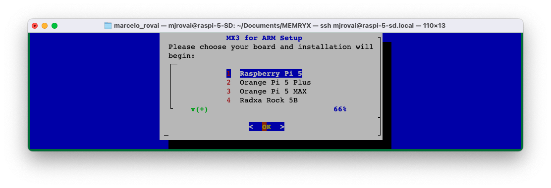 Run the ARM setup utility to configure platform-specific settings. This opens a menu to select the platform and apply the necessary configurations (e.g., enabling PCIe Gen 3.0 on the Raspberry Pi 5):