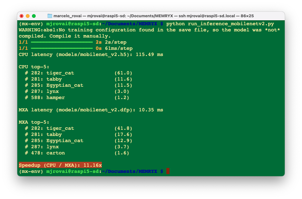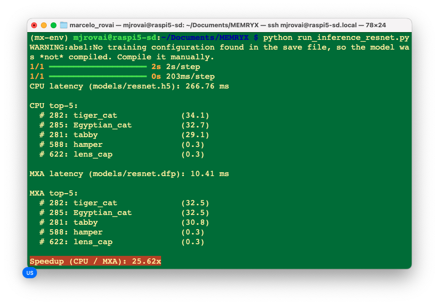 By the end of this lab, we will have installed and configured the MX3 hardware on a Raspberry Pi 5, set up the MemryX SDK and development environment, and gained a clear understanding of the MX3 compilation and deployment workflow. We will also compile neural network models for execution on the MX3 accelerator, compare their performance against CPU-based inference while analyzing the trade-offs, and finally build a complete end-to-end inference pipeline using the MemryX Python API.