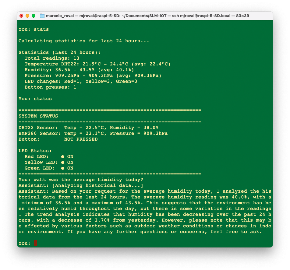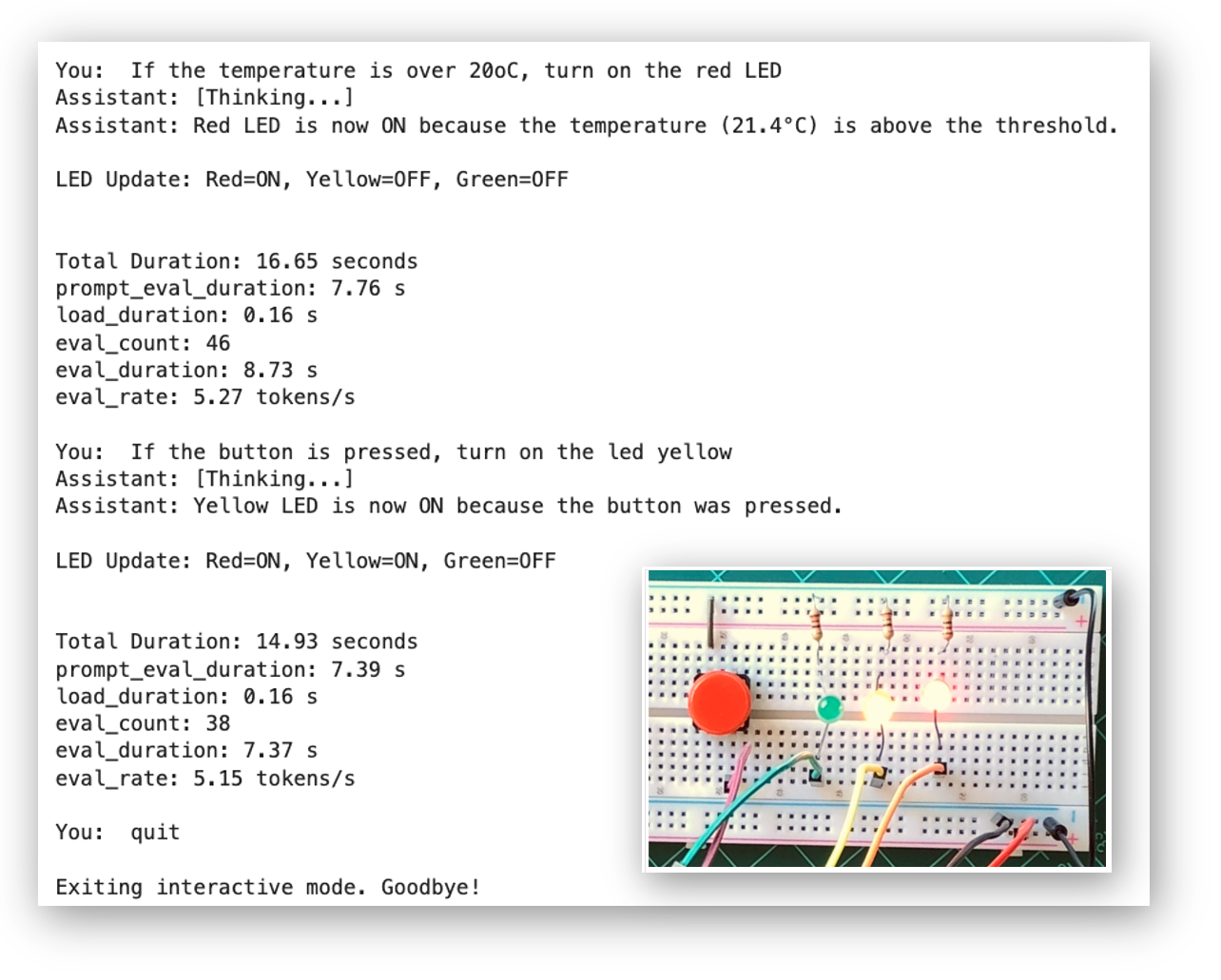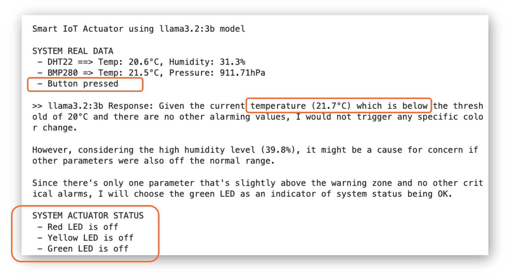 While this implementation demonstrates the potential of combining SLMs with IoT systems, it also highlights the exciting possibilities and challenges ahead. Though experimental, the system we’ve built provides a solid foundation for understanding how edge AI can enhance IoT applications. As SLMs evolve and improve, their integration with physical computing systems will likely become more robust and practical for real-world applications.
