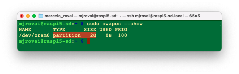 sudo rebootWhen your device reboots (you should enter SSH again), you will notice that the maximum swap memory value shown at the top is now around 2GB (in my case, 1.95GB).