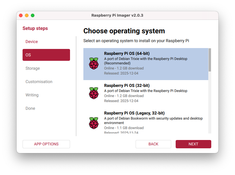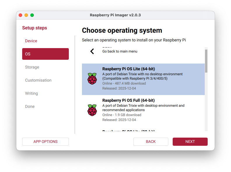 Raspberry Pi OS (Other),Raspberry Pi OS Lite (64-bit).