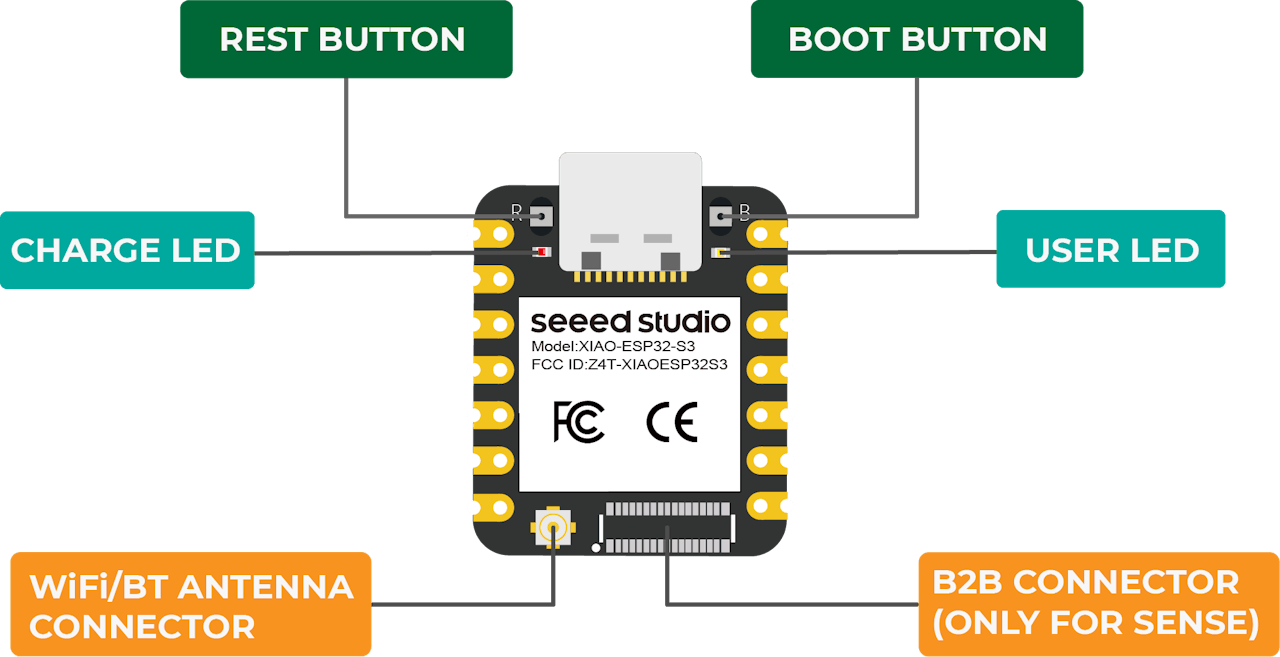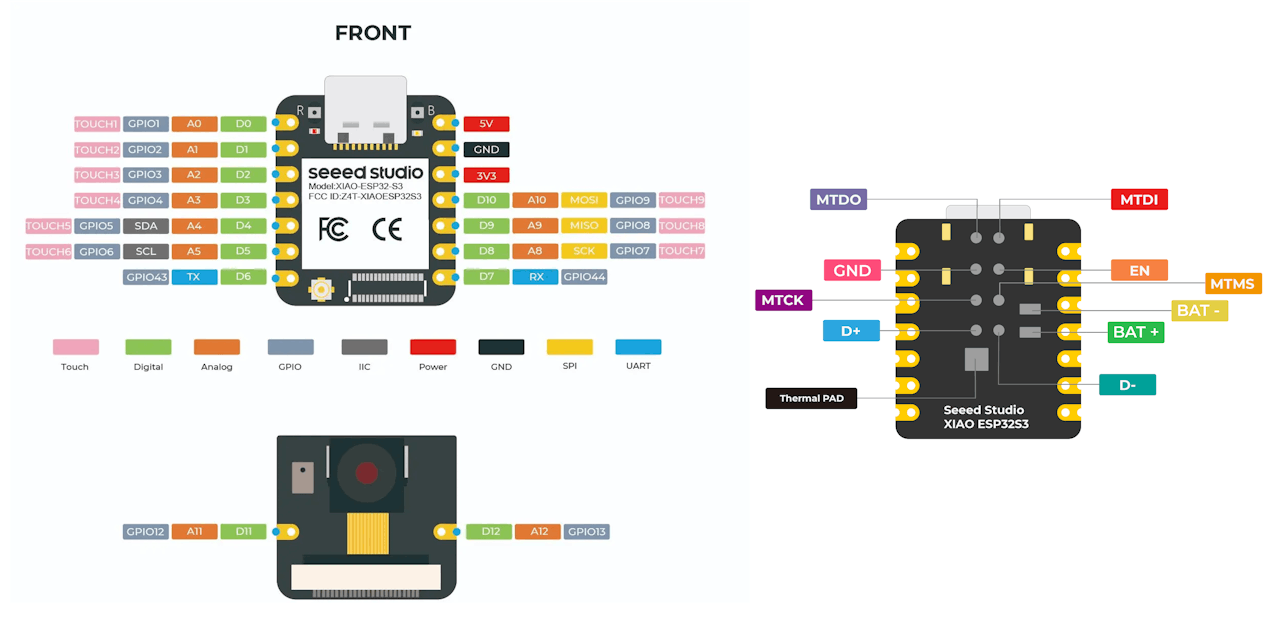- XIAO ESP32S3 Sense: Main development board with integrated camera sensor, digital microphone, and SD card support